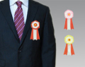 牡丹の花のようにふわっとした花のリボン徽章です。