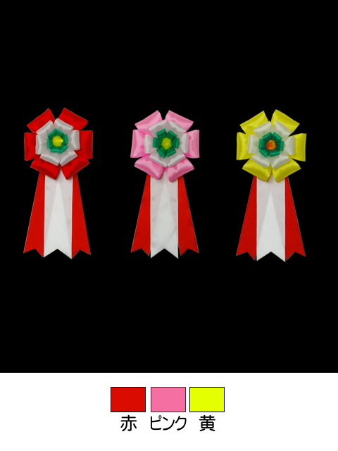 牡丹の花のようにふわっとした花のリボン徽章です。